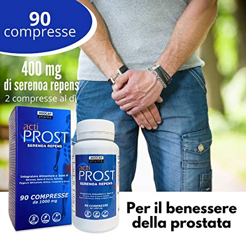 Actiprost, integratore per la prostata, 90 compresse | 400 mg Serenoa Repens (saw palmetto) con Semi di Zucca, Pygeum Africanum, Epilobio, Ortica, Licopene| 2 cpr al giorno, per le vie urinarie,Agocap